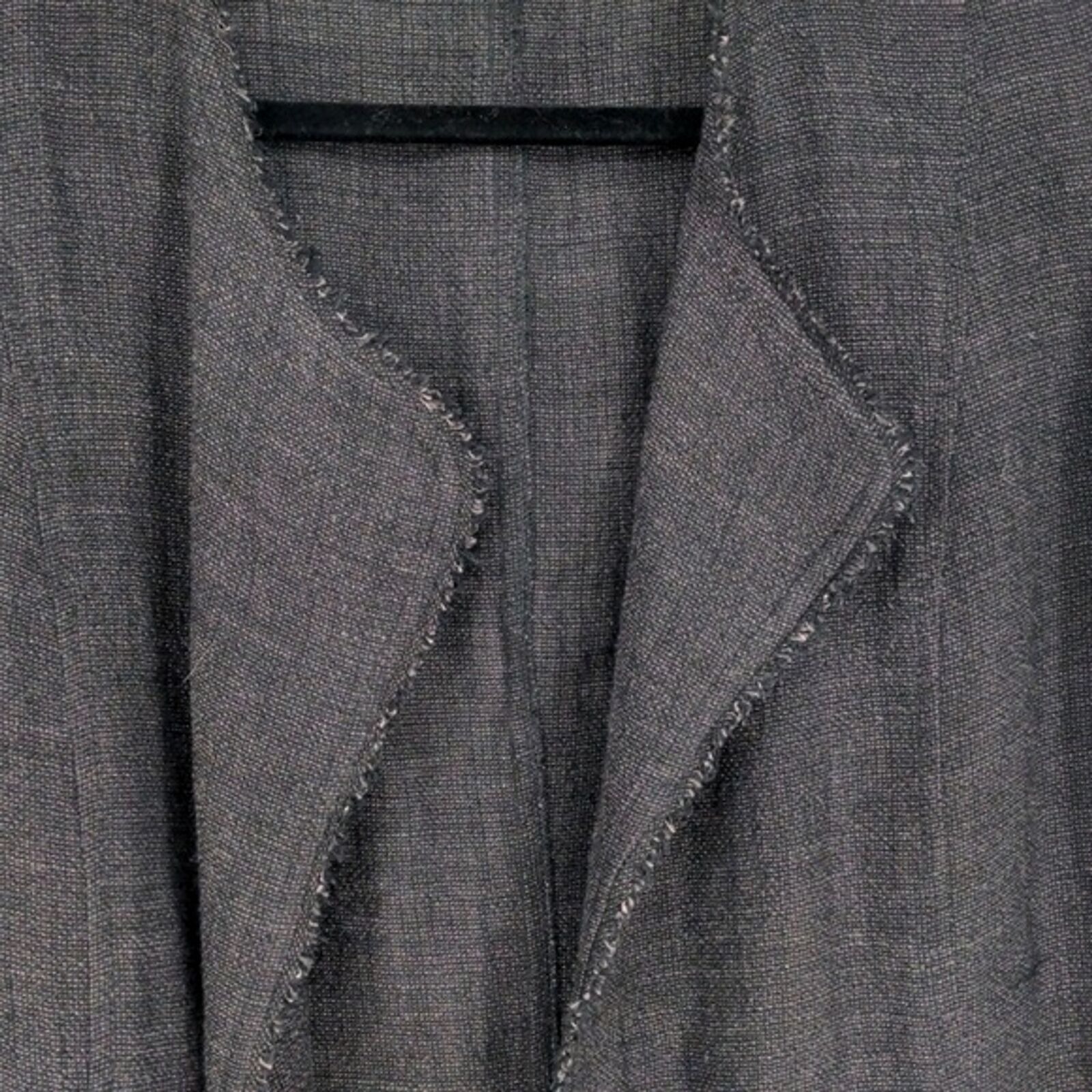Secured raw edges on all lines, this blazer is a linen rayon blend that drapes very nicely, giving that linen look without the linen wrinkle.