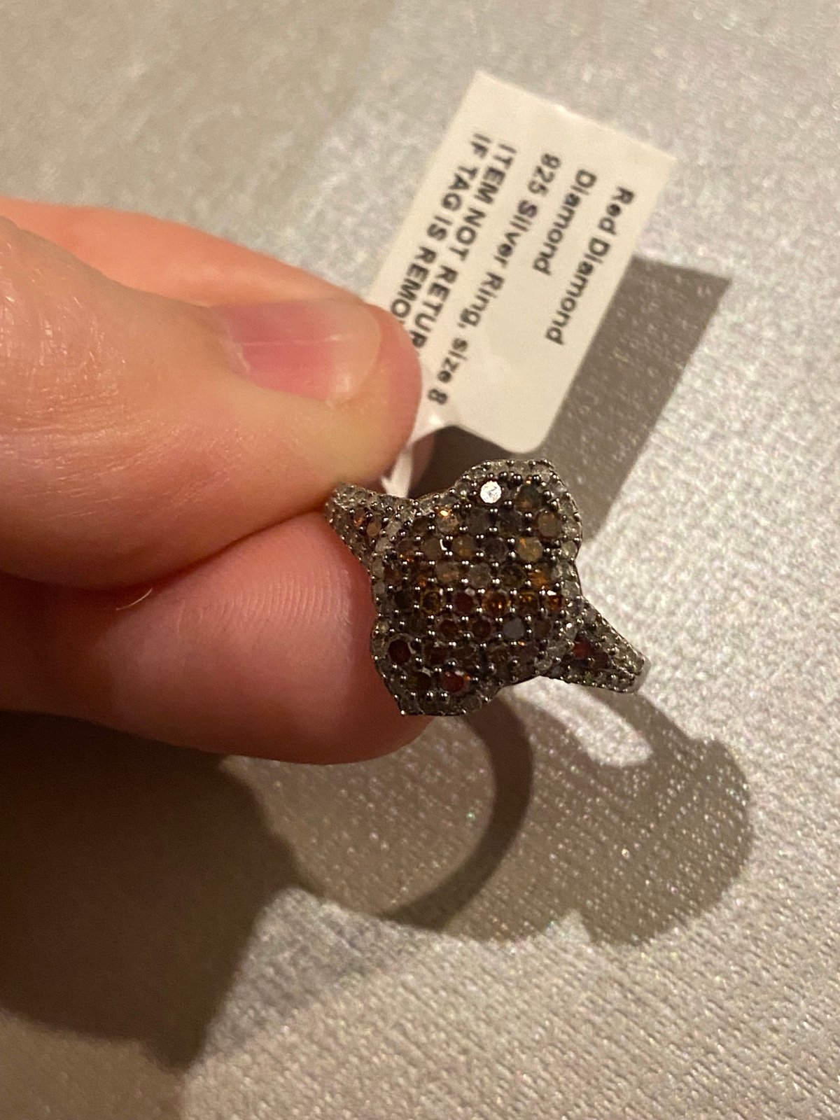 Genuine Red & White Diamond Cluster Ring - sz 8 - new!