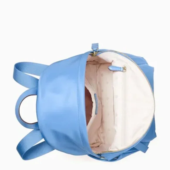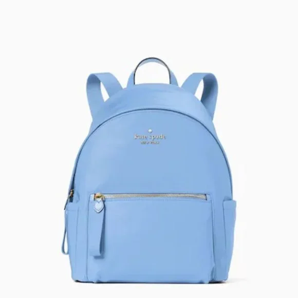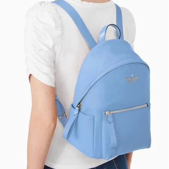 Kate Spade♠️ Deep Cornflower Medium Chelsea Backpack♠️ Color: Deep Cornflower♠️ Measurements:13.7"H x 10.4"W x 7.2"DHandle Drop: 2.0"♠️ Features: Front Exterior Zip Pocket2 Side PocketsMetal Pinmount LogoClosure Type:Zip ClosureInterior: Front Slip and Front Credit Card SlotsKey Leash and Back Zip PocketsTwo Way Spade Jacquard Lining♠️ ♠️ Materials:Nylon - Chelsea the little better NylonSmooth PVC TrimStyle No:WKR00556 ImportedNo Dust Bag Included♠️MFSRP: $299.00 Price: $140.00