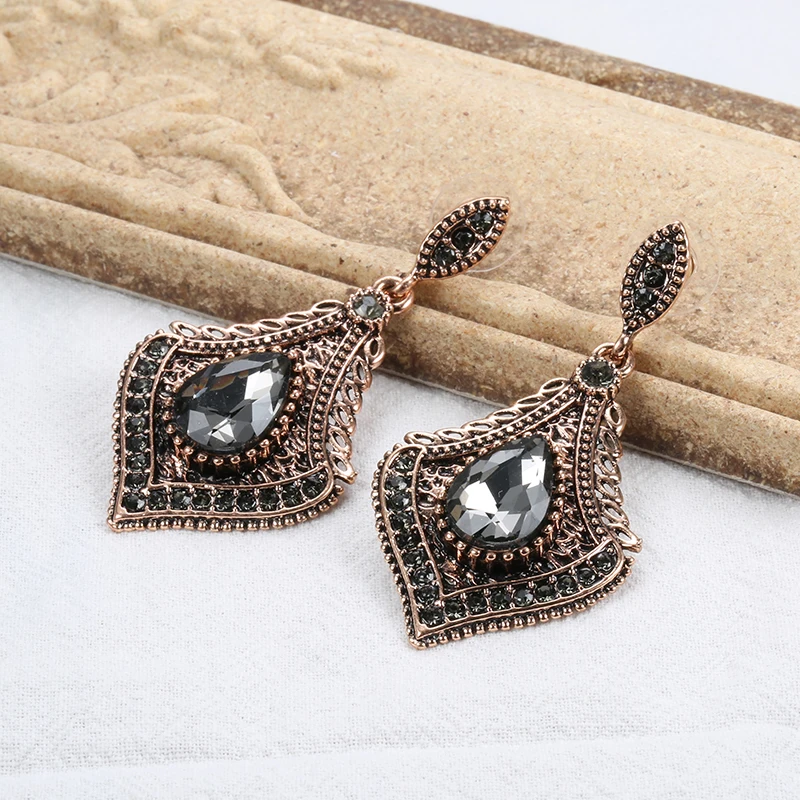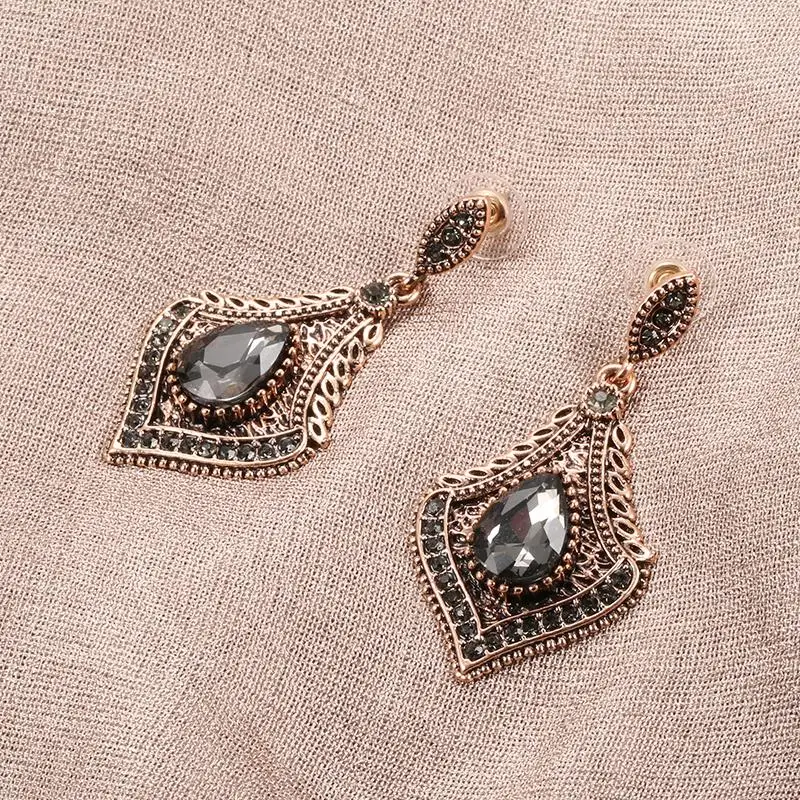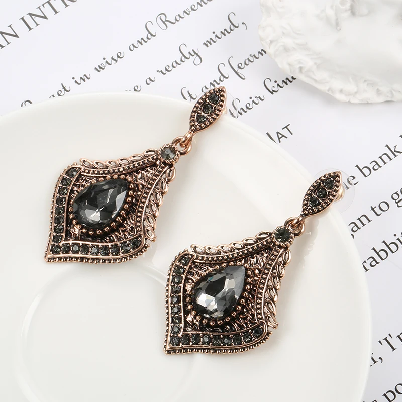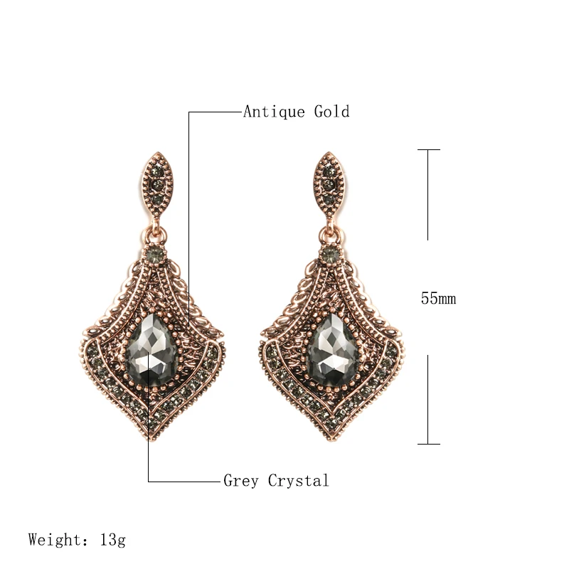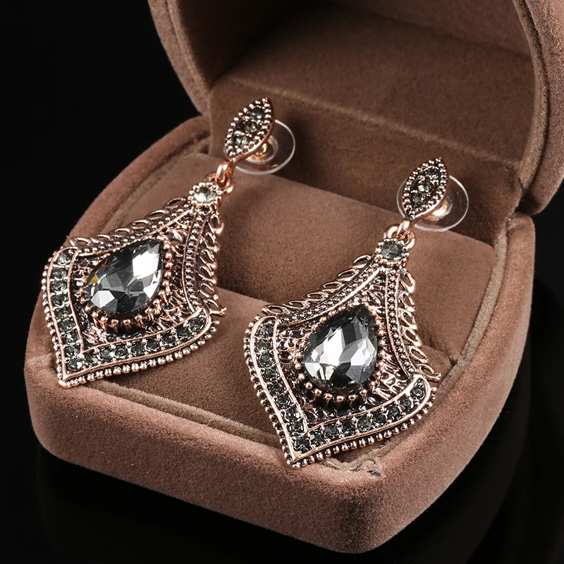 Kinel Vintage Turkish Gray Crystal Drop Earring for Women Ethnic Wedding Jewelry Antique Gold Color Love Gift Wholesale