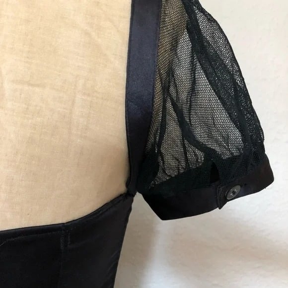 2007 Dolce & Gabbana black silk gown with bustier style bodice and mesh puff sleeves